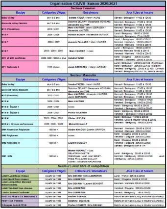 Reprise de la saison 2020 -2021: Voici le planning prévisionnel des entraînements pour cette nouvelle saison qui débute la semaine prochaine dans un contexte particulier. En effet, nous aurons à appliquer des mesures sanitaires : arrivée dans …