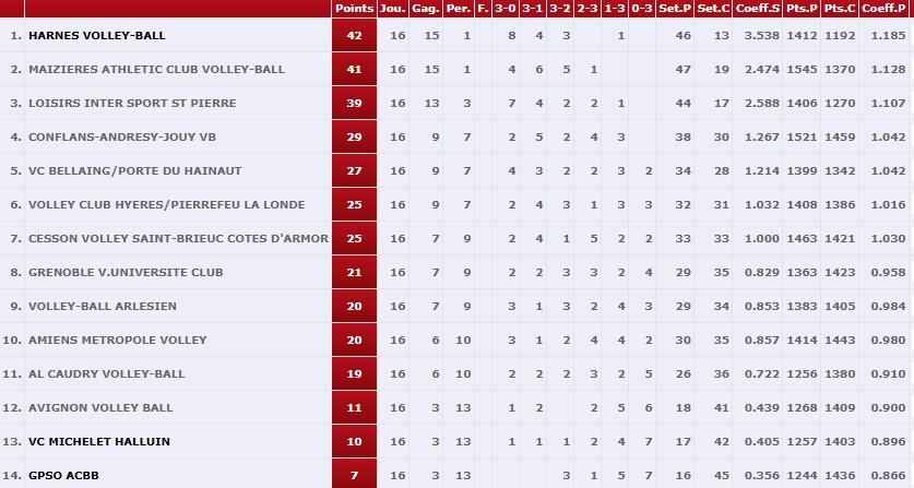 - Nos Corsaires sont allés chercher une belle revanche à BELLAING avec une victoire 3 sets à 1 qui les fait passer à la 4ème place au classement Elite.