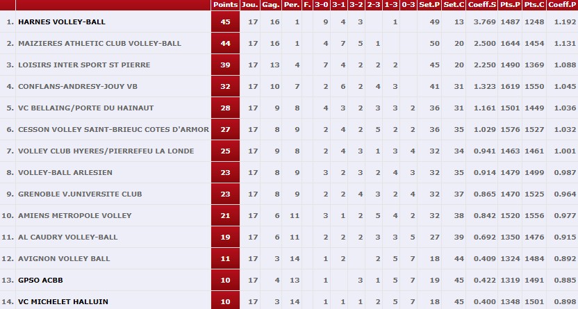 - Nos Corsaires se sont imposés face à HALLUIN à Conflans 3 sets à 1 – Ils confortent leur 4ème place au classement Elite.