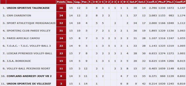Championnat Nationale 2 M Journée 16 à Conflans le samedi 28 février 2026 :