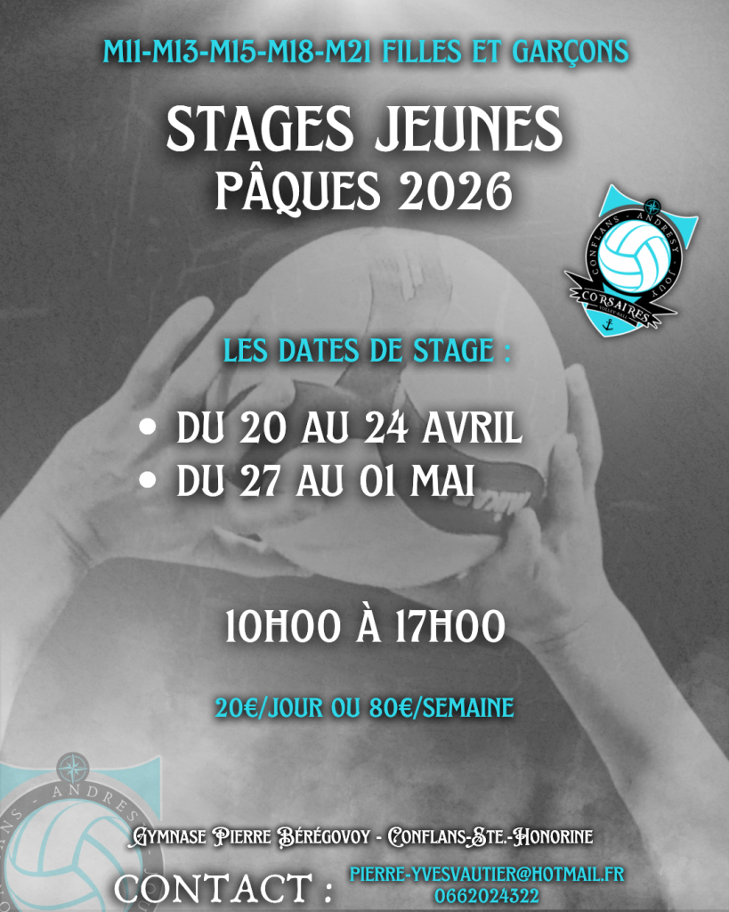 Le club organise un nouveau stage jeunes en salle et sur le Beach pour les 10 à 23 ans pendant les vacances de printemps du lundi 20 au vendredi 24 Avril et du lundi 27 Avril au vendredi 1 Mai 2026