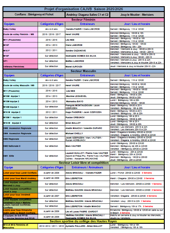 - Dimanche 28 septembre 2025 à 14h au gymnase Bérégovoy de Conflans : championnat de France N2M CAJVB 2 / NIORT