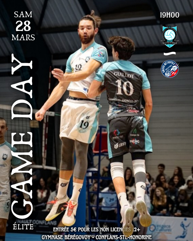 Championnat Elite M : CAJVB / AMIENS METROPOLE – Samedi 28 mars 2026 à 19h – Gymnase Bérégovoy à Conflans